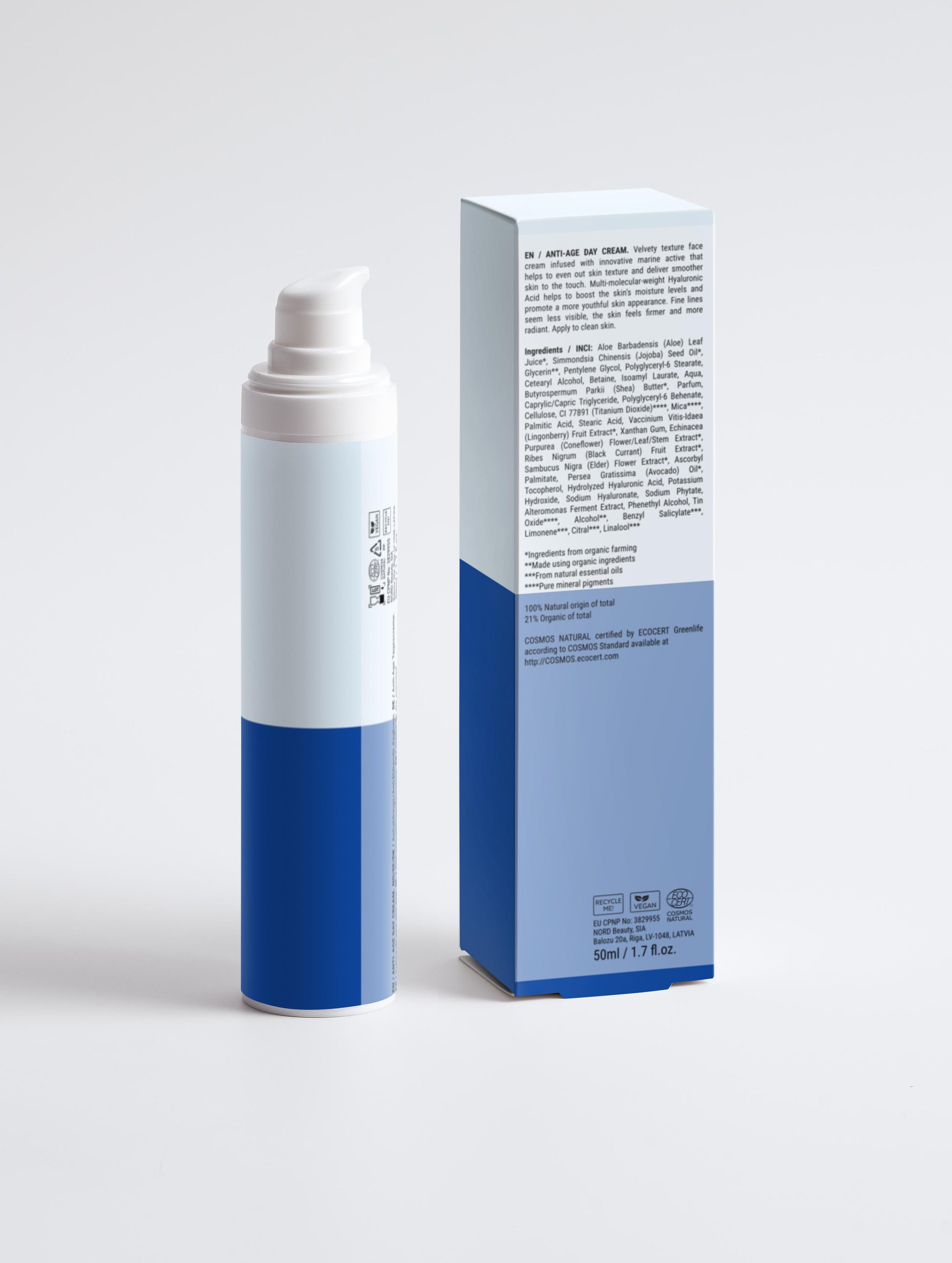 Velvety texture face cream infused with innovative marine active that helps to even out skin texture and deliver smoother skin to the touch. Custome anti age product with multi-molecular-weight Hyaluronic Acid helps to boost the skin’s moisture levels and promote a more youthful skin appearance. Fine lines seem less visible, the skin feels firmer and more radiant. Apply custome anti age products to clean skin. Moisture boost, Luxurious texture, Hyaluronic acid, face-care, Moisturiser (Type), Anti-age (Concern), Mature (Skin type), Hyaluronic Acid (Active ingredients), Shea Butter (Active ingredients), Aloe Juice (Active ingredients), Betaine (Active ingredients), White (Packaging color) Aloe juice, Jojoba oil, Betaine, Shea butter, Berry extract, Flower extract, Avocado oil, Hyaluronic acid, Alteromonas ferment extract Aloe Barbadensis (Aloe) Leaf Juice➀, Simmondsia Chinensis (Jojoba) Seed Oil➀, Glycerin➁, Pentylene Glycol, Polyglyceryl-6 Stearate, Cetearyl Alcohol, Betaine, Isoamyl Laurate, Aqua, Butyrospermum Parkii (Shea) Butter➀, Parfum, Caprylic/Capric Triglyceride, Polyglyceryl-6 Behenate, Cellulose, CI 77891 (Titanium Dioxide)④, Mica④, Palmitic Acid, Stearic Acid, Vaccinium Vitis-Idaea (Lingonberry) Fruit Extract➀, Xanthan Gum, Echinacea Purpurea (Coneflower) Flower/Leaf/Stem Extract➀, Ribes Nigrum (Black Currant) Fruit Extract➀, Sambucus Nigra (Elder) Flower Extract➀, Ascorbyl Palmitate, Persea Gratissima (Avocado) Oil➀, Tocopherol, Hydrolyzed Hyaluronic Acid, Potassium Hydroxide, Sodium Hyaluronate, Sodium Phytate, Alteromonas Ferment Extract, Phenethyl Alcohol, Tin Oxide④, Alcohol➁, Benzyl Salicylate➂, Limonene➂, Citral➂, Linalool➂ ➀ Ingredients from organic farming ➁ Made using organic ingredients ➂ From natural essential oils ④ Pure mineral pigments